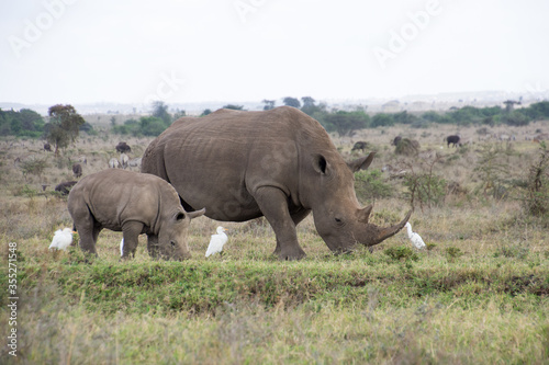 © Hamidslens, Fototapeta premium Baby Rhino with a freind