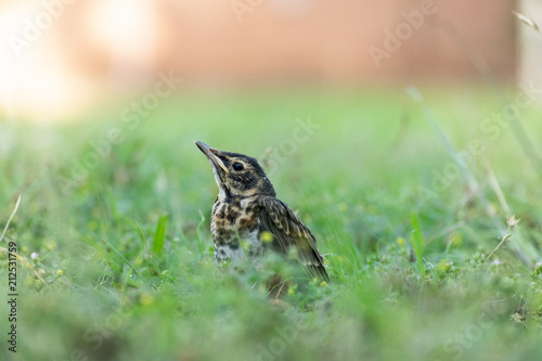 Fototapeta premium baby robin has a first glimpse of spring