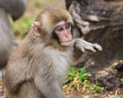Fototapeta premium Baby snow monkey looking into distance