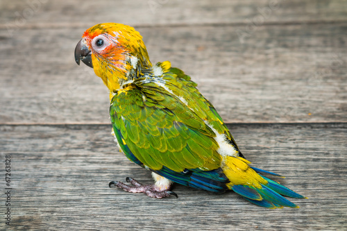 Obraz premium Baby Sun Conure Parrot on the wooden background