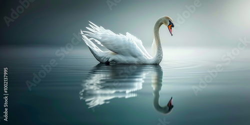 © Kainat, Fototapeta premium Baby Swan On The Lake Background