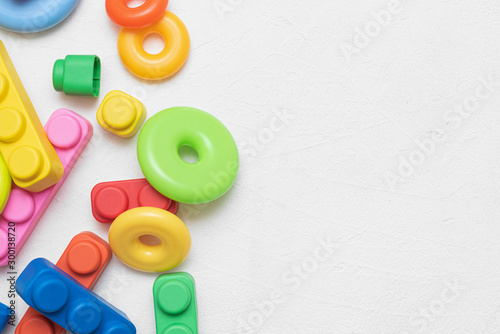 © Natali, Fototapeta premium Baby toys flat lay background with copy space.