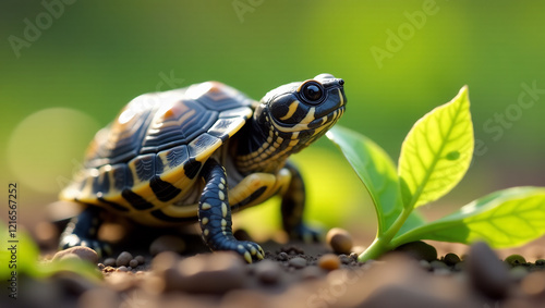 © PSingh, Obraz premium Baby Turtle's First Leaf Sniff