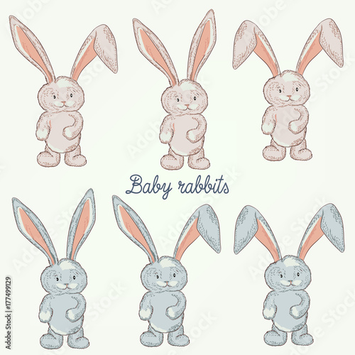 Fototapeta premium Baby vector rabbits set in rustic cute style