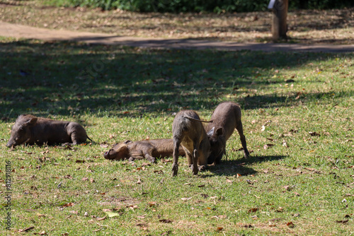 © Catalin, Fototapeta premium Baby warthog playing in the grass