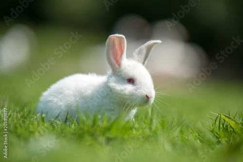 © byrdyak, Fototapeta premium Baby white rabbit in grass