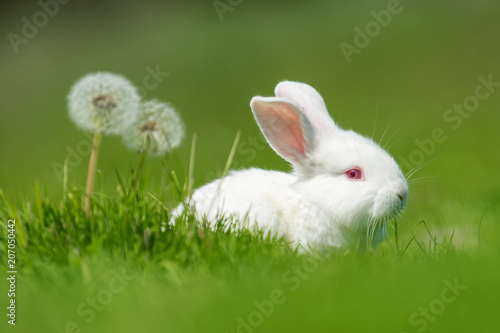 Fototapeta premium Baby white rabbit in grass