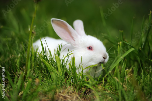 © byrdyak, Fototapeta premium Baby white rabbits in grass