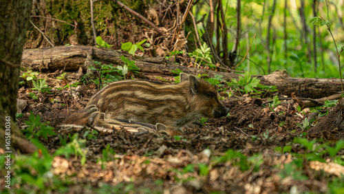 Obraz premium Baby wild boars (Sus Scrofa) in colorfull forest