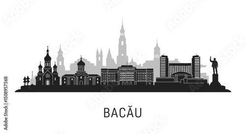 © godsfavoritearts, Fototapeta premium Bacau Romania Skyline Silhouette Vector.