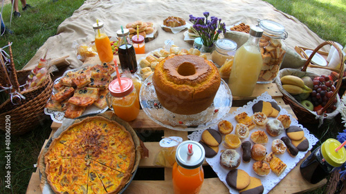 © An Instant of Time, Fototapeta premium Bachelor and bachelorette party Picnic at Porto City Party in Oporto, Portugal. Blanket with food prepared for summer picnic outdoor.