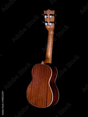 © bjginny, Naklejka premium back of hawaii ukulele guitar isolated against black background