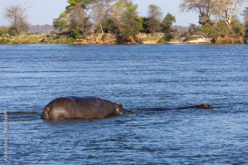 © Andreas, Fototapeta premium back of hippo in okavango river