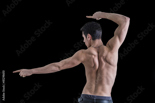© theartofphoto, Obraz premium Back of shirtless muscular young man doing dynamic dance pose