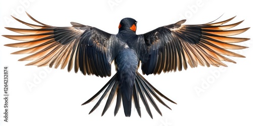 © HO, Fototapeta premium Back perspective of a swallow soaring, showing tail feather details.