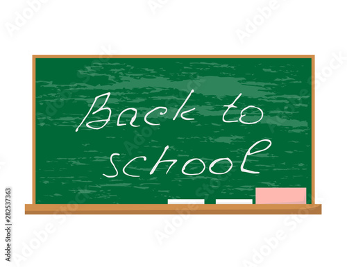 Fototapeta premium back to school, blackboard and chalk in flat