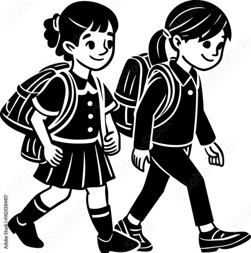 © Md, Fototapeta premium Back to school flat vector illustration children.