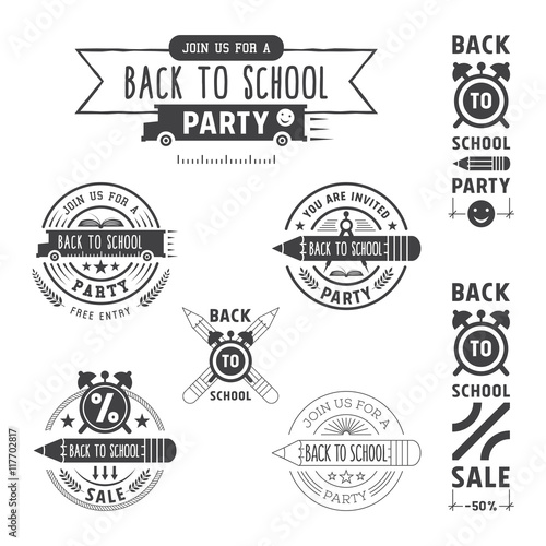 © valeri_si, Fototapeta premium Back to school invitation and sale emblems