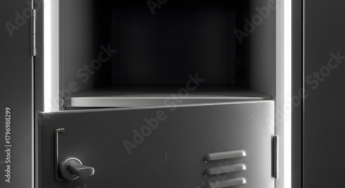 Fototapeta premium Back to school, Opened Metal Locker in Minimalist Style with Light Strips, Stora