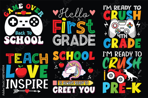 © AlMamun, Obraz premium Back to school Retro vintage Bundle t shirt design.