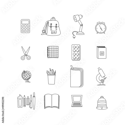 Obraz premium Back to school vector set of elements. Educational clipart. School supplies....