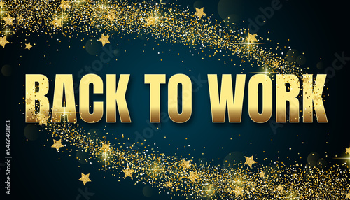 Fototapeta premium Back To Work in shiny golden color, stars design element and on dark background.