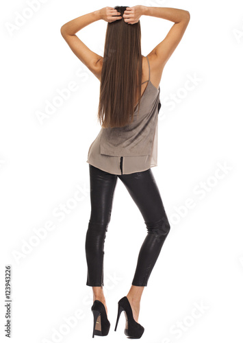 © Andrey_Arkusha, Fototapeta premium Back view. Brunette woman