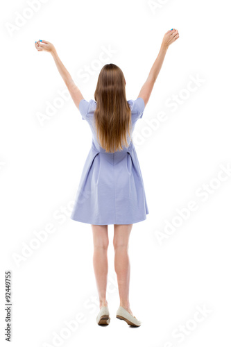 © ghoststone, Fototapeta premium Back view of beautiful woman welcomes.