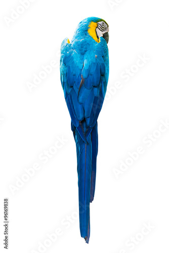 © yotrakbutda, Naklejka premium back view of Colourful parrot isolated on white