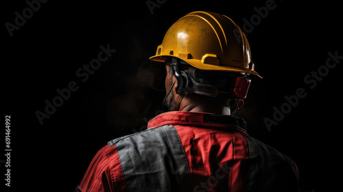 Obraz premium Back view of mine workers wearing helmet