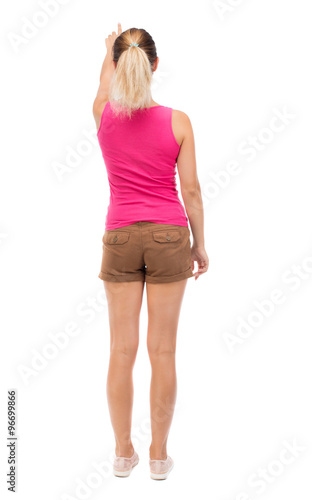 Fototapeta premium Back view of pointing woman.