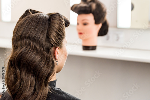 © Yakov, Fototapeta premium Back view woman at hairdresser's