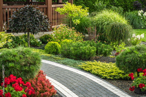 © Tomasz Zajda, Obraz premium Back Yard Garden Full of Mature Plants and Trees.