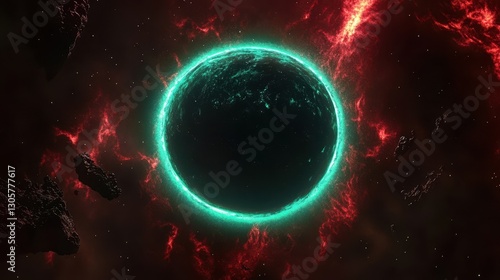 Obraz premium Backdrop with glowing planetary eclipse surrounded by fiery colors and comic...