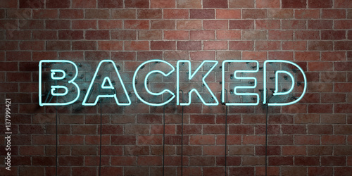 Obraz premium BACKED - fluorescent Neon tube Sign on brickwork - Front view - 3D rendered royalty free stock picture. Can be used for online banner ads and direct mailers..