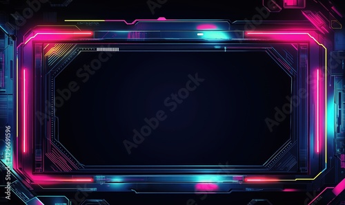 Obraz premium Background abstract neon cyberpunk blue, red, purple technology banner wallpaper