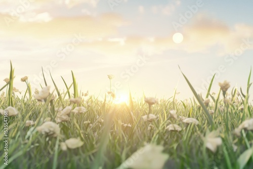 © SEEN, Fototapeta premium Background cartoon grass field and sky in soft tones