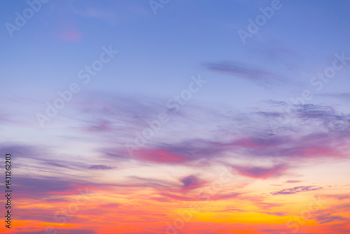 Fototapeta premium Background, Cloud Texture and Orange and Pink Sky in the Morning, Gradient Background, Sunset, Sunrise, Summer, Abstract, Sky, Evening, Pastel, Soft Effect, Pattern, Texture, Design, Nature, Spring,