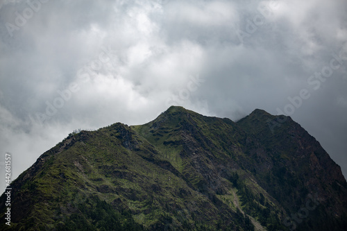 © PANDECH, Fototapeta premium Background clouds over the mountains folk style.