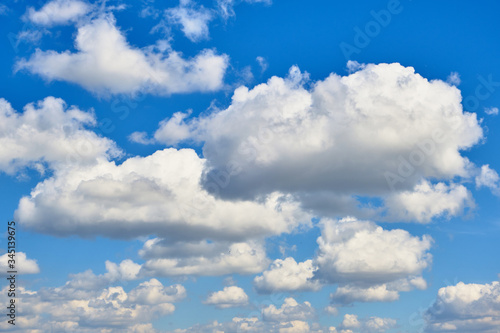 Obraz premium Background, Cumulus clouds in a bright blue sky.