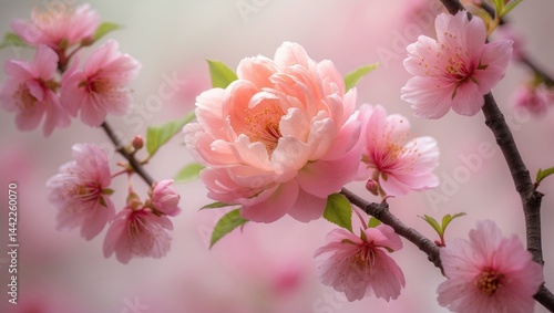 © Giovanni, Obraz premium Background featuring a peach flower blossom