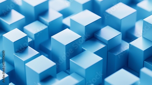 © Uzma, Fototapeta premium Background featuring icy blue 3D cubes arranged in an abstract isometric view, with a focus on minimalist design and high contrast. Captured in full ultra HD for detailed clarity.
