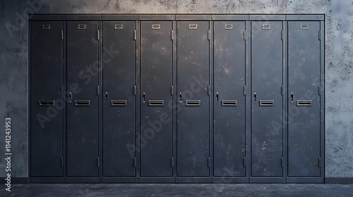© Nikita, Fototapeta premium background featuring rows of lockers in minimalistic style.