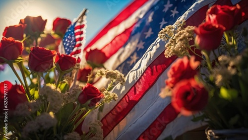 © RT Studio 1981, Naklejka premium background for a close up photo of the American flag and beautiful flowers