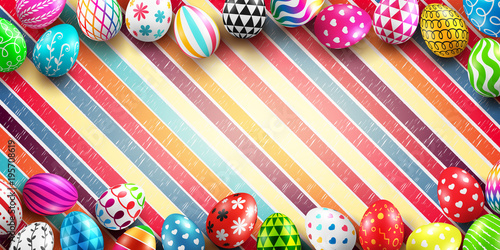 Fototapeta premium Background for Happy Easter Day with Colorful Painted Easter Eggs and space for your text.Vector illustration EPS10
