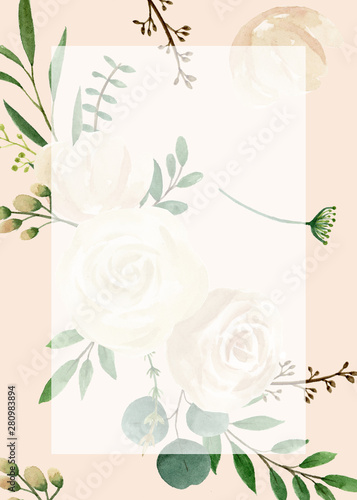 © naree, Naklejka premium Background for wedding and greeting card. Wedding invitation card design. Flower watercolor.