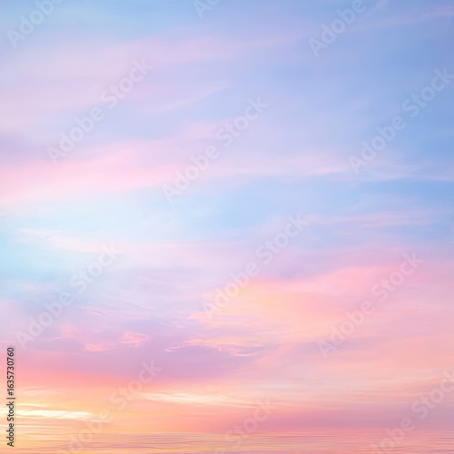 © Syal, Obraz premium Background formed by a bright pastel authentic sky during sunset. Pink, peach, blue blur elegant backdrop with empty space perfect for design . Light color gradient transitions. magical