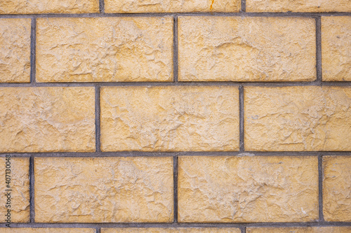 Fototapeta premium Background from a wall with beige block-shaped bricks