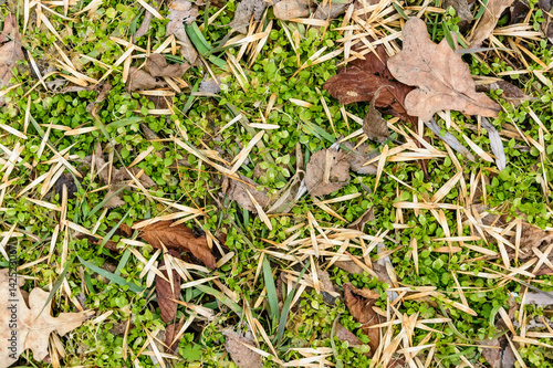 Fototapeta premium Background from autumn foliage and grass on ground