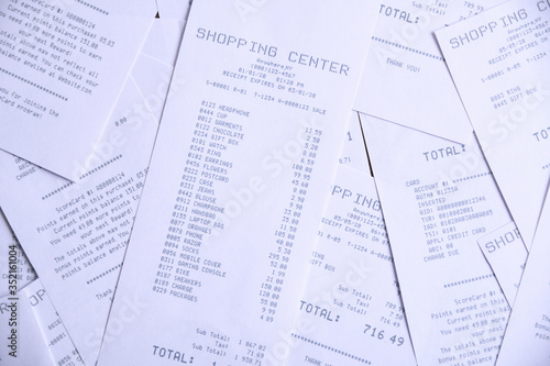 © Ivan, Fototapeta premium Background from checks from purchases from shops. Close up